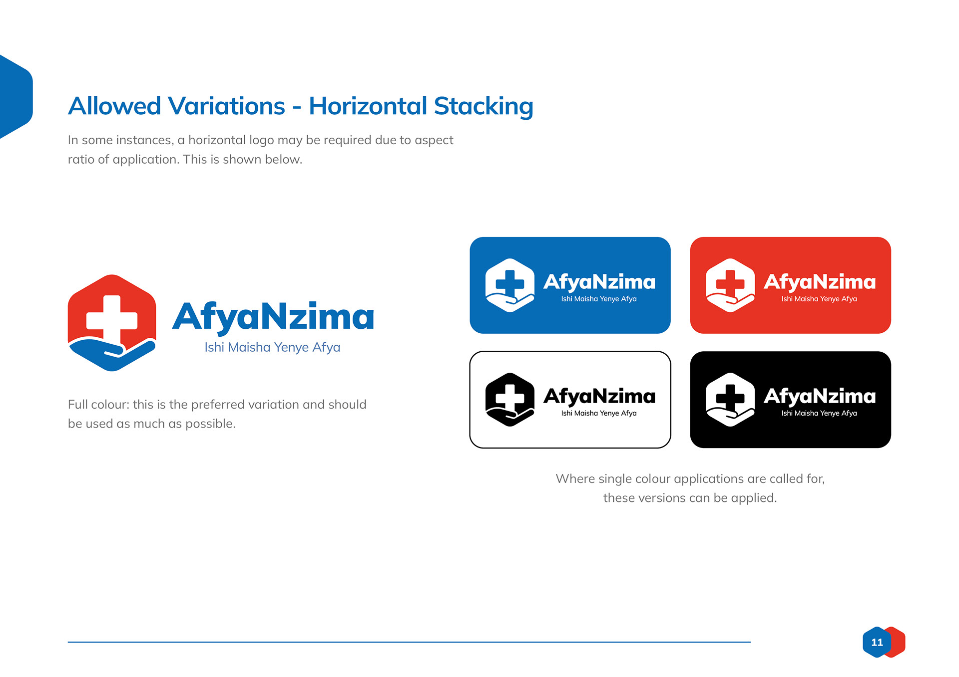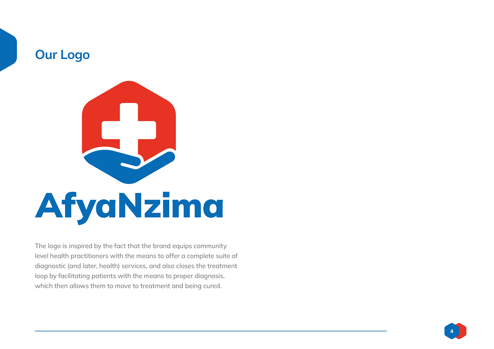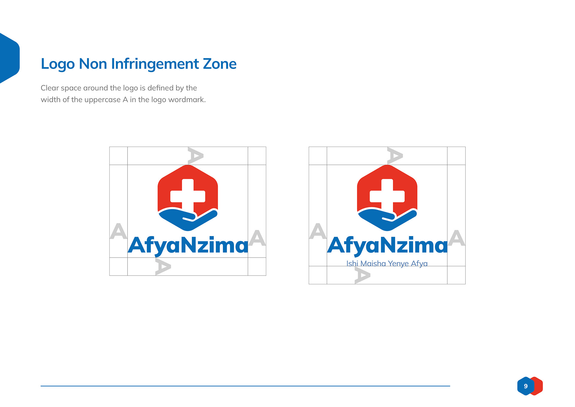 Logo design and branding toolkit created for AfyaNzima, a patient-facing sub brand of community based clinics.