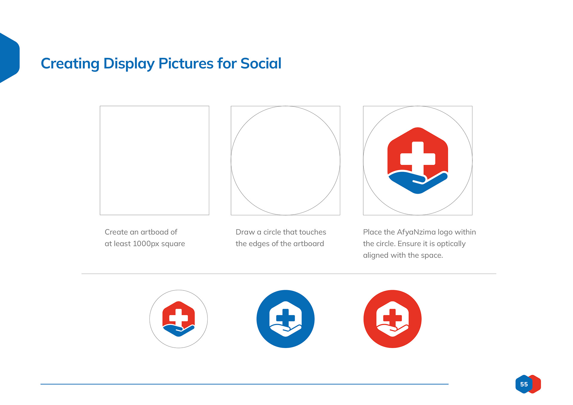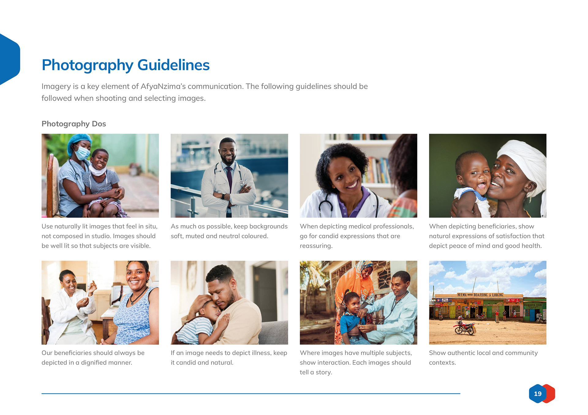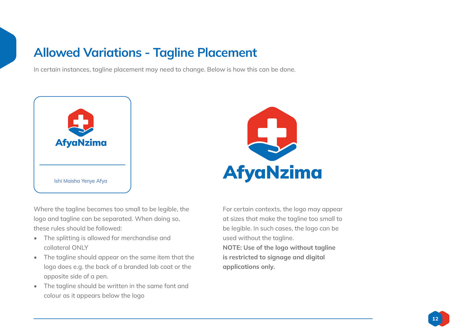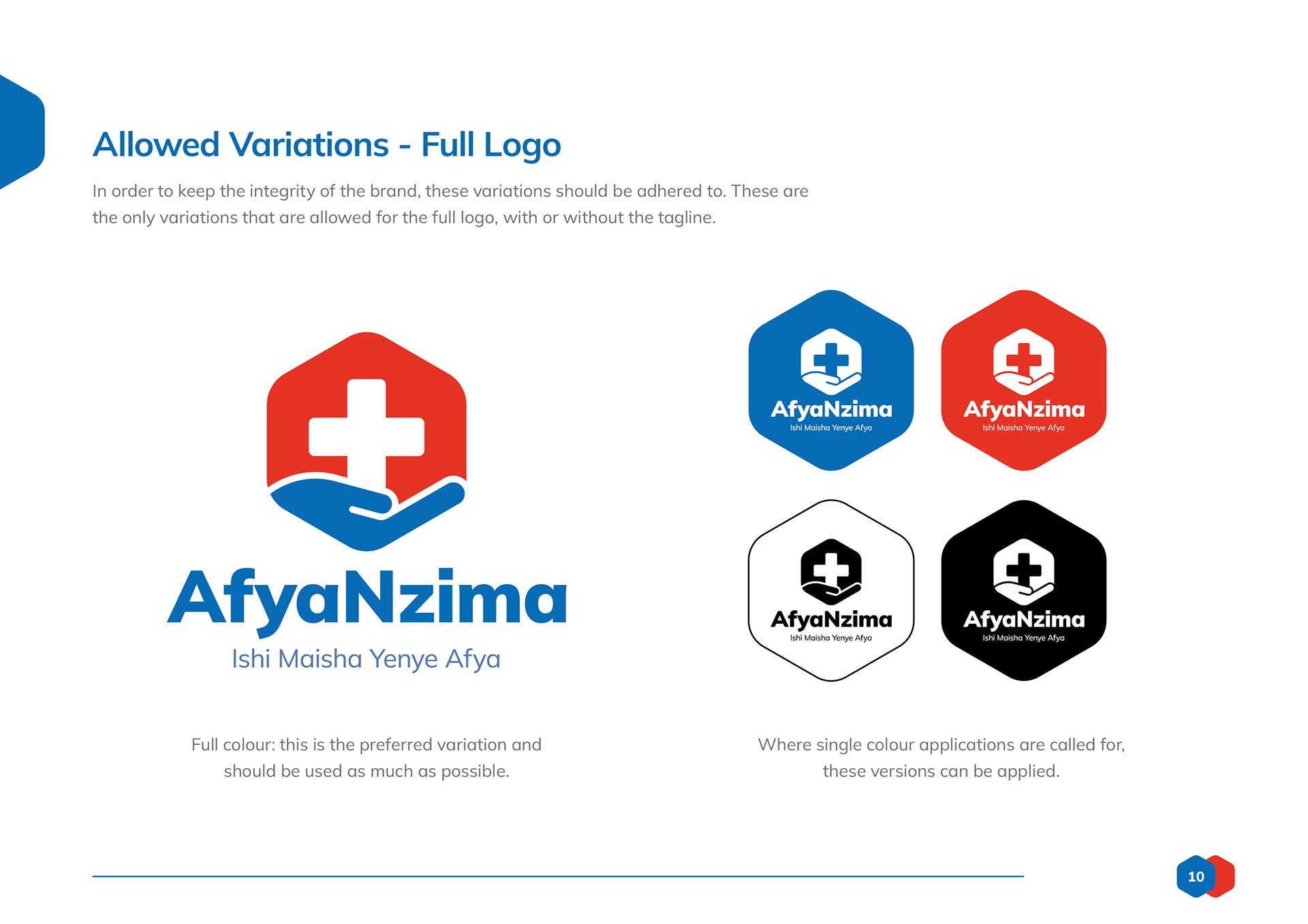 Logo design and branding toolkit created for AfyaNzima, a patient-facing sub brand of community based clinics.